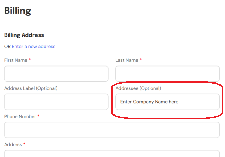 The payment processor or your bank may decline payments if the value entered in the Addressee field is invalid.